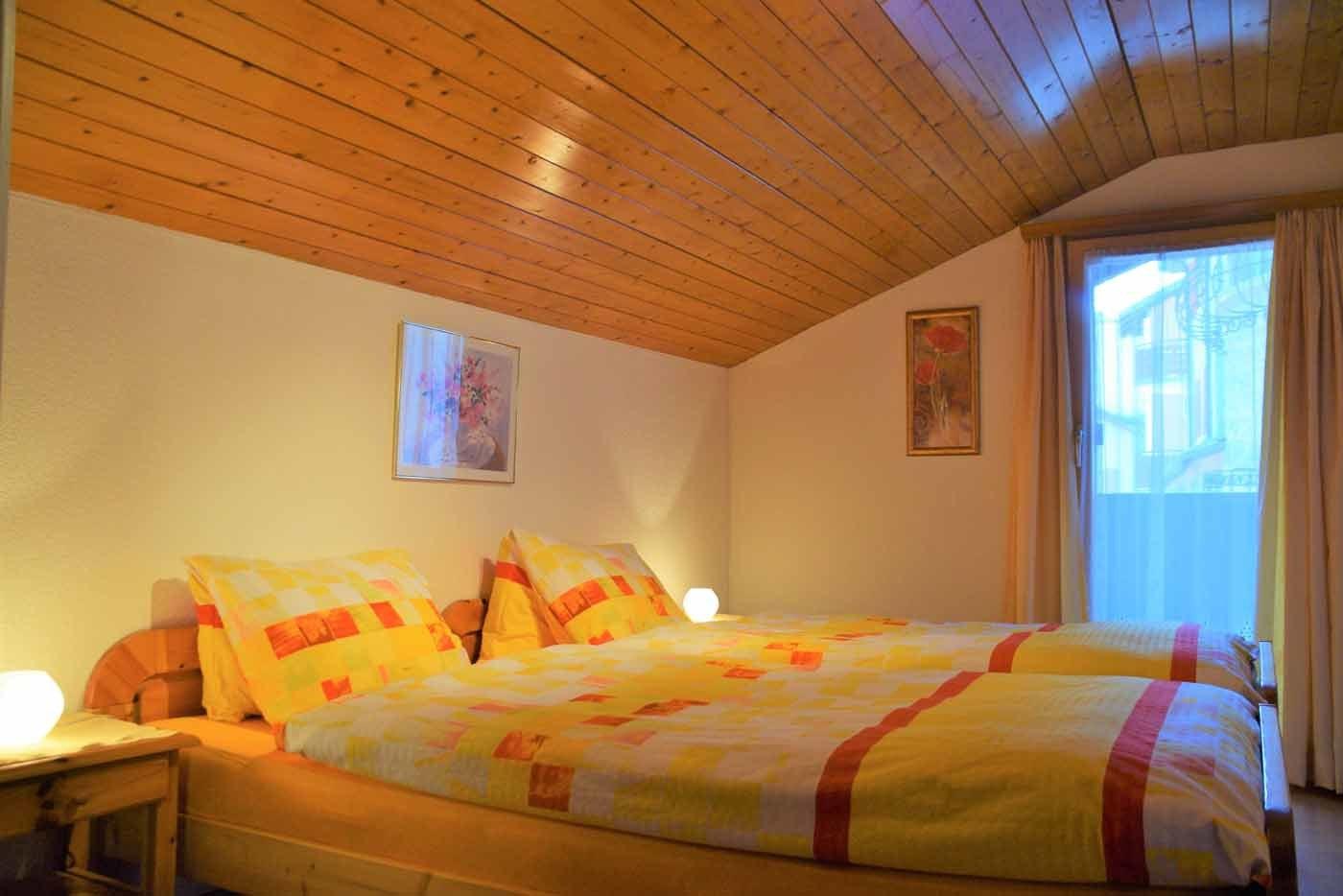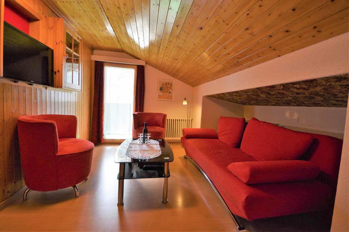Die Dachwohnung besteht aus: 2 Doppelzimmer mit je 2 Betten. gut eingerichtete Küche mit elektrischem 3-Plattenherd, Backofen sowie Kühlschrank mit Gefrierfach (Toaster, Raclette- und Fondueset, Filterkaffeemaschine, Wasserkocher), mit Essecke, gemütlichem Wohnzimmer. Auf dem Sofa und den Polsterstühlen können Sie sich ausruhen und fernsehen. Nasszelle mit Dusche/WC, Waschbecken und Spiegelschrank. Balkon auf der Südseite mit Sitzgelegenheit. SAT-TV Flachbildschirm, gratis WLAN Zugang, Radio/CD-Player